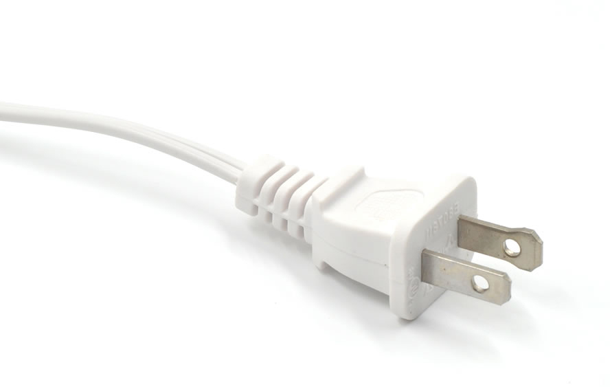 USA two prong power cord plug with UL and CUL CSA certification. Built to NEMA 1-15P standards. Rated up to 15A 125V, 13A 125V or 10A 125V.